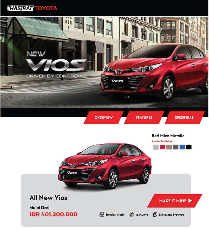 - Feature: Lead capture form (free trial, test drive, demo request, etc.), promotion and headline, clear CTA (call to action) buttons, email integration, WhatsApp/live chat
